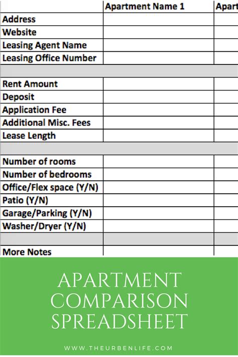 Apartment Comparison Worksheet. What was that exact square footage? As someone who has moved a few times i've gotten.