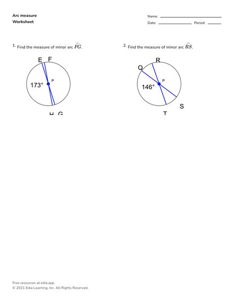 Arc measure is the measure of the angle that the arc creates. These worksheets will help you learn. Degree measures are the most popular.
