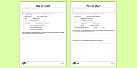 A Handy Worksheet For Student S To Clarify The Differences Between 'Our' And 'Are'.