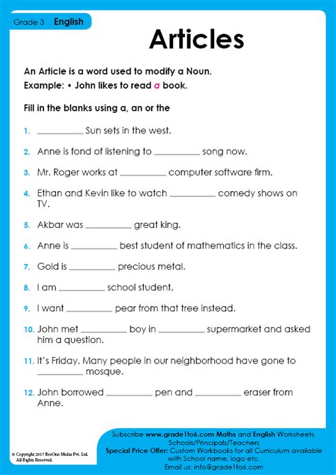 Circle the correct article in each sentence. Fill in the correct article wherever necessary: Third grade english language arts worksheets.
