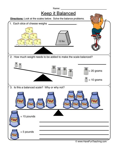 Web you can use this worksheet with a balance scale to show how 3 manipulatives and 4 manipulatives on one side of the scale is the same as 7 on the other side. Web this activity on balance contains three differentiated sheets in total. They can represent their mathematical investigation on the worksheet that.
