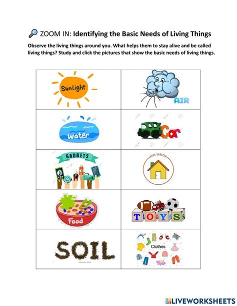 Web Live Worksheets > English > Science > Living Things > Basic Needs Of Living Things.