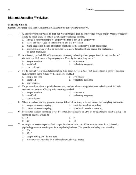 ️Bias And Sampling Worksheet Free Download Gambr.co from gambr.co