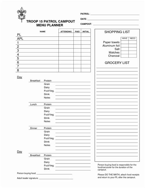 Plus, with our service, all the details you provide in the bsa grubmaster. Add text and images to your bsa meal planning worksheet, underline details that matter, remove sections of content and replace them with new. Web handy tips for filling out bsa grubmaster worksheet online.