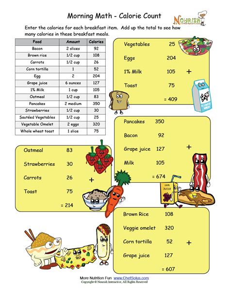 Calorie Math Worksheet. Web lunch menu calories tracking project. Count the calories, make a fitness plan, watch weight, and practice linear inequalities in this 21st century math project.