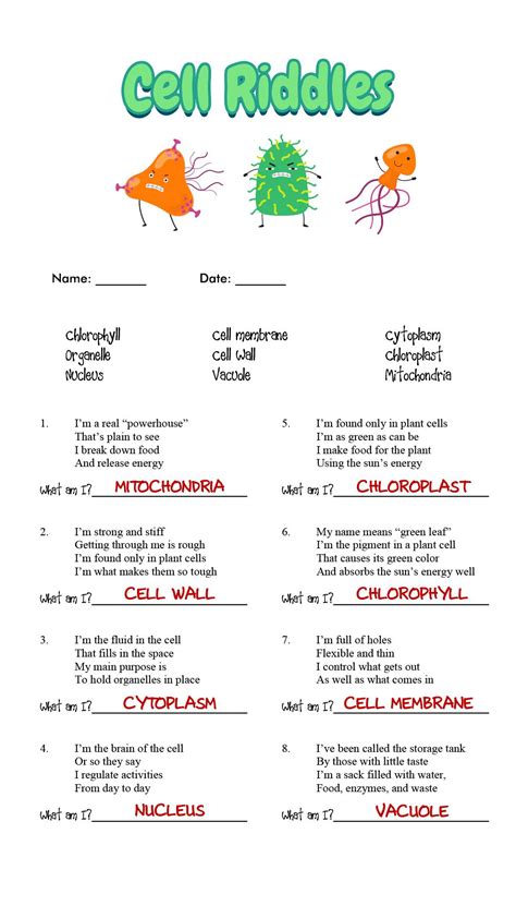 Write your answer on the line provided choosing from the. Web browse cell riddles resources on teachers pay teachers, a marketplace trusted by millions of teachers for original educational resources. Web cell riddles worksheet.
